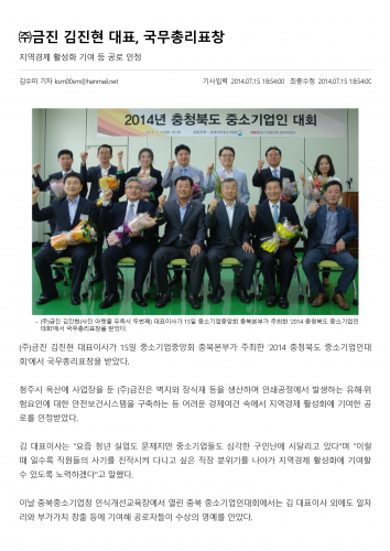 2014/07/15 (주)금진, 김진현대표 국무총리표창