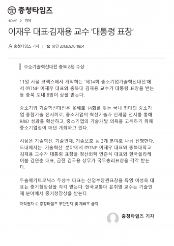 2013/09/10 (주)금진, 중소기업기술혁신대전 수상