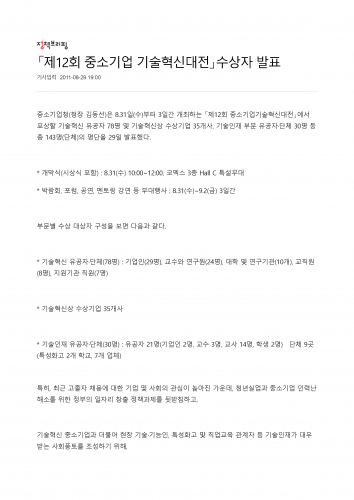 2011/08/30 (주)금진,중기 기술혁신 대전 '국무총리상'