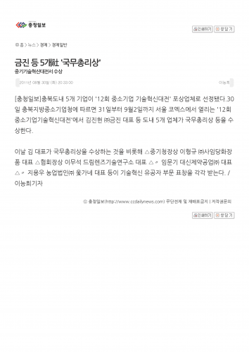 2011/08/29 (주)금진, 기술혁신상 '국무총리상' 수여