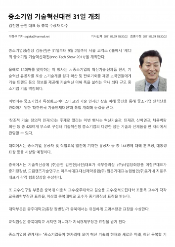2011/08/29 (주)금진, 중소기업 기술혁신대전 수상