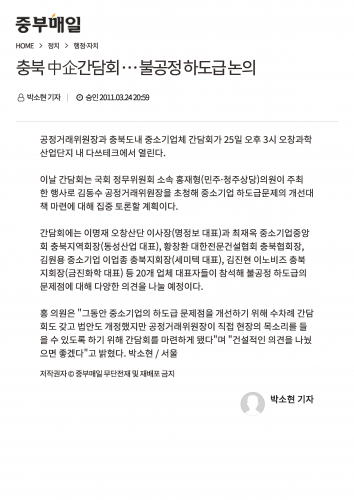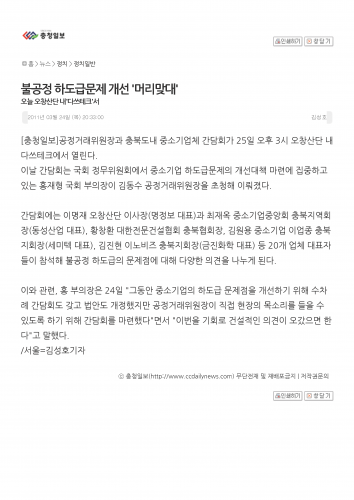 2011/03/24 (주)금진, 충북중소기업간담회 '불공정하도급' 논의