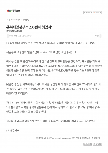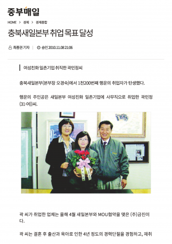 2010/11/18 (주)금진, 충북새일본부 '1200번째 취업자'